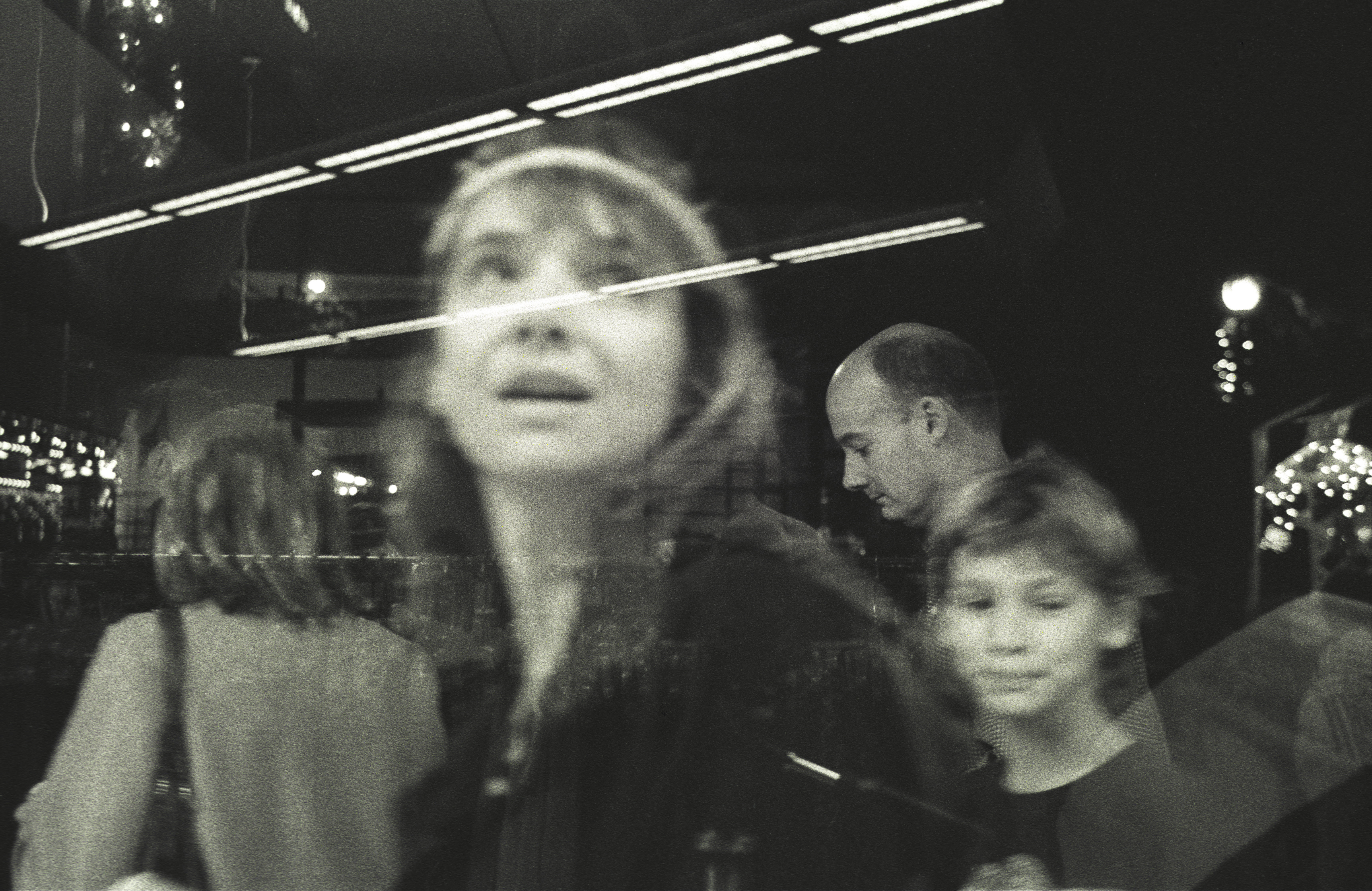 While employed as a live mannequin in a clothing store, I incorporated a 35 mm camera into the window display, the shutter release cord hidden in my clothing. I posed without moving. When each passerby realized that I was alive, I shot a portrait of the stranger standing on the other side of the glass.